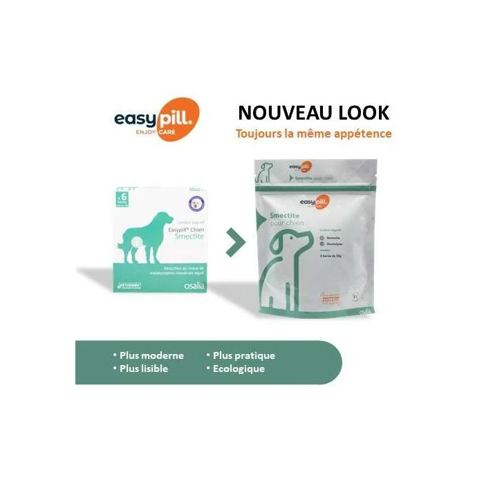 Easypill Smectite chien réduit le risque de malabsorption intestinale aiguë • Sa formule est riche en ingrédient hautement digestibles et apporte les électrolytes nécessaires à l’organisme • De la bentonite, des électrolytes et des protéines et glucides hautement digestibles dans une formule très appétente pour réduire l’intensité de la malabsorption intestinale et la déshydratation.
