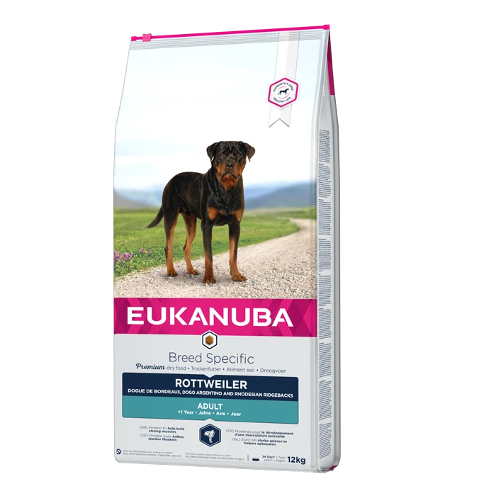 Cet aliment spécifique à la race a été développé en collaboration avec des vétérinaires et est recommandé par les meilleurs éleveurs. Il est 100% complet et équilibré pour que votre compagnon puisse continuer à donner le meilleur de lui-même dans tous les domaines. Les Rottweilers en particulier, mais aussi les Dogue de Bordeaux, les Cane Corsos, les Dogue argentins et les Rhodesian ridgebacks… sont au mieux de leur forme avec les aliments pour adultes EUKANUBA pour Rottweilers, qui sont spécialement adaptés à leurs besoins.