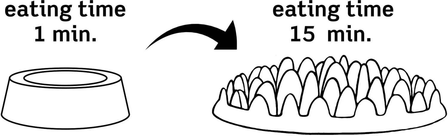 La gamelle anti-glouton de Northmate est un bol spécialement conçu en forme de bouquet d’herbe qui transformera le repas de votre chien en un jeu stimulant. Cette version mini est conçue pour les petites races de chiens et les chiots. Lorsque la quantité souhaitée de nourriture pour chien est étalée sur ce bol, c’est à votre chien de pousser la nourriture entre les brins d’herbe. De cette façon, le temps de repas de votre animal est considérablement prolongé et le risque de gobage et de ballonnement est évité. La gamelle est fabriqué en plastique dur sans phtalate et convient donc à une utilisation en extérieur et au lave-vaisselle. Peux contenir des croquettes et humides.