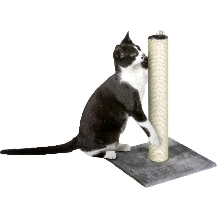 Petit griffoir avec base en peluche et poteau en sisal pour que votre chat puisse s’étirer et faire ses griffes.