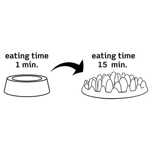 Parsemez la quantité de nourriture souhaitée dans le distributeur pour que votre chien s’occupe de la pousser vers l’extérieur. Un jeu stimulant et bon pour sa santé digestive !