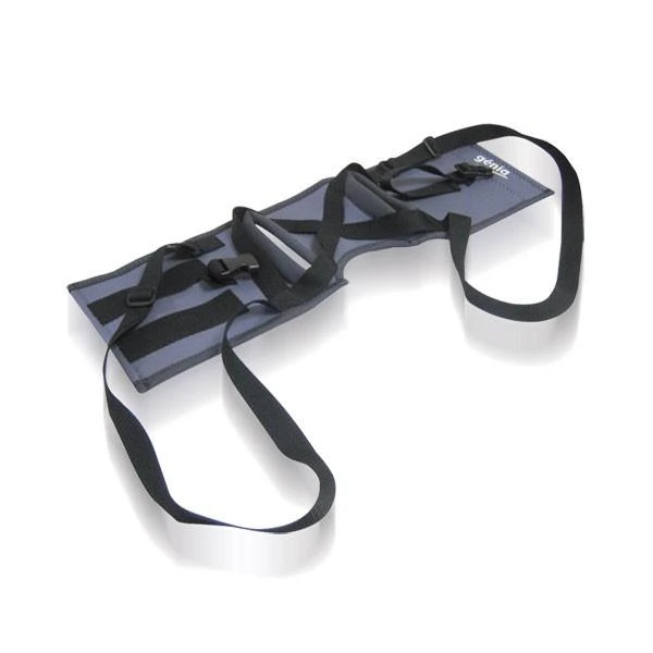 Avec bandes Velcro et sangles ajustables. Dégagement au niveau des parties génitales.