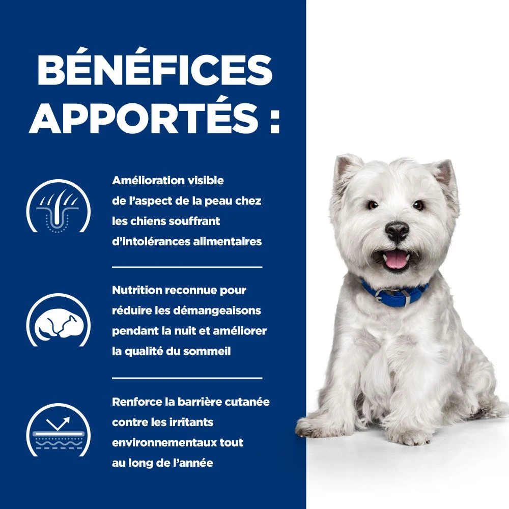 Hill’s Canine Mini Derm Complète est un aliment DIFFÉRENCIANT aux nombreux bénéfices :
