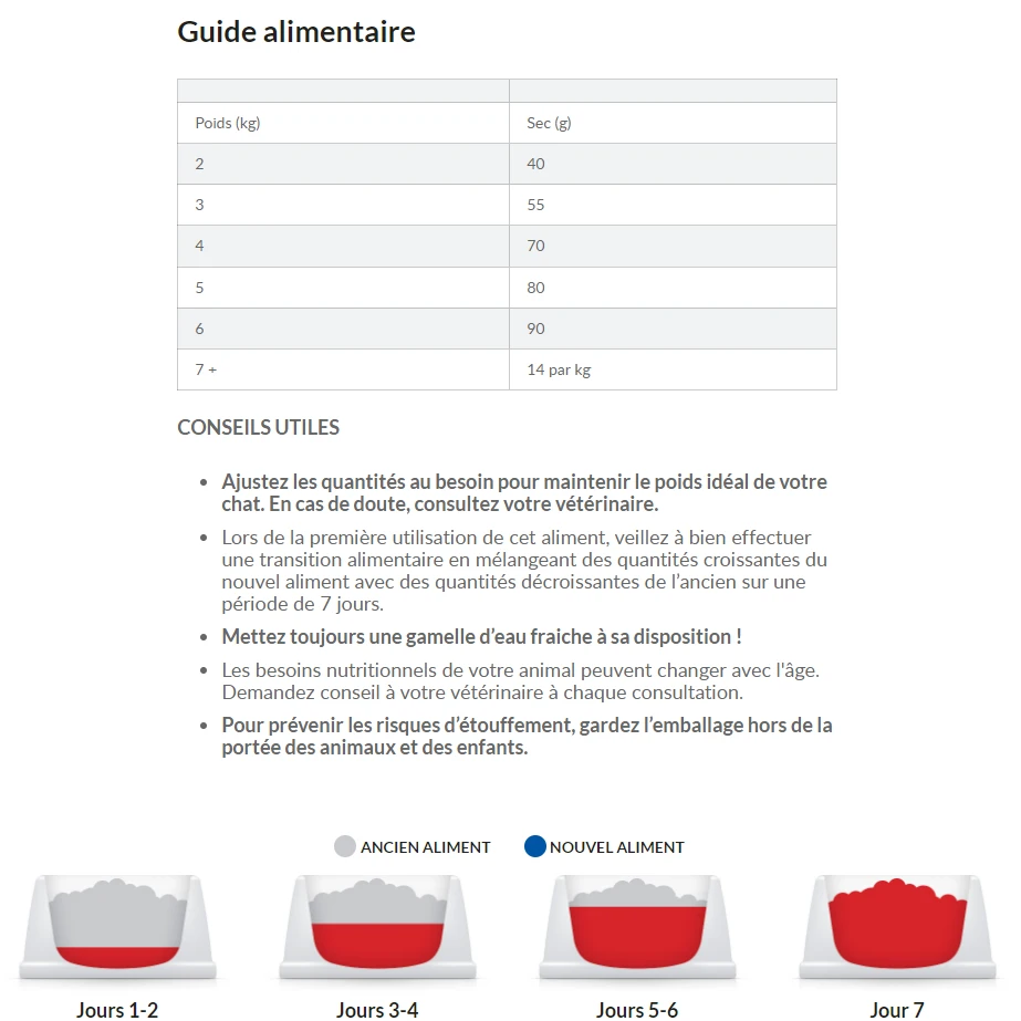 Des fibres en grande quantité sont apportées à votre chat senior pour contrôler sa sensation de faim entre les repas, ainsi que des vitamines antioxydantes E et C pour des reins en bonne santé.
