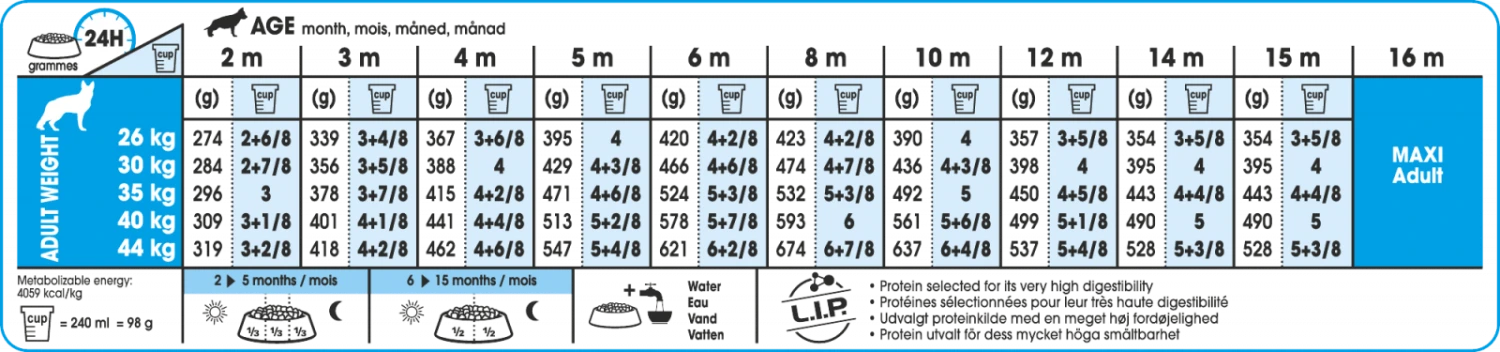 Apport calorique renforcé pour aider à maintenir le poids idéal et assurer une croissance harmonieuse du chiot de grande taille aux besoins énergétiques supérieurs.