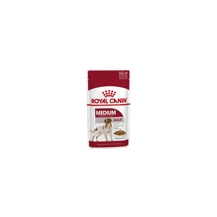 ROYAL CANIN® Medium Adult in Gravy (en sauce) est spécialement formulé pour répondre à tous les besoins nutritionnels de votre chien adulte de taille moyenne et convient aux chiens âgés de 12 mois à 10 ans. pesant entre 11 et 25 kg.
