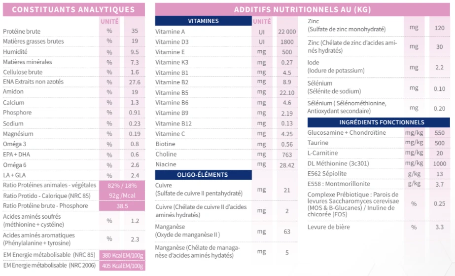 Une énergie métabolisable raisonnée, un apport en calcium et phosphore modéré en font l’aliment de choix pour les chiots de grande taille qui nécessitent une croissance lente et contrôlée.