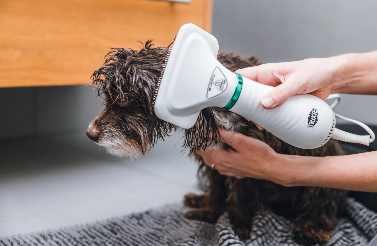 La Trixie Warm Air Brush Electric 380 Watt est une brosse à air chaud silencieuse pour les chiens avec tous types de pelage. Une brosse très fine qui convient aux animaux sensibles et craintifs. Le moteur silencieux fait peu de bruit et évite ainsi la peur, chez l’animal. Elle est équipée de deux niveaux de chaleur et possède des picots en plastique. La tête de la brosse est remplaçable. La brosse est garantie deux ans.