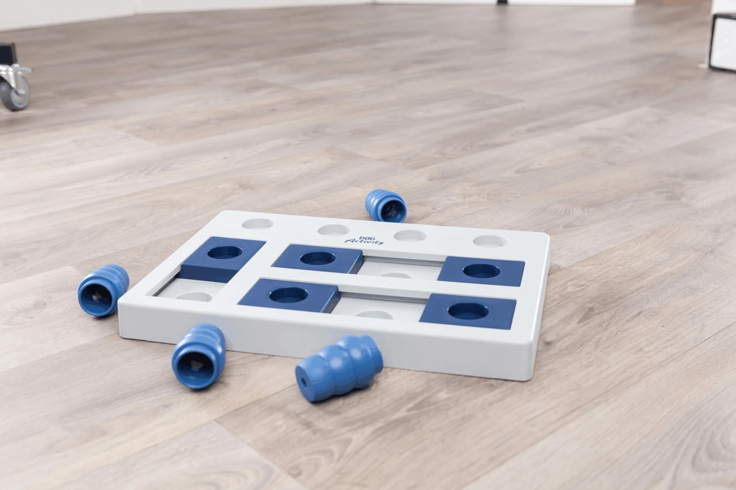 Avec ce jeu de plateau stimulant, vous mettez votre chien au défi de repousser sans cesse ses limites et d’être de plus en plus inventif pour obtenir la récompense.