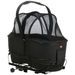 Panier de bicyclette avec cadre métallique robuste pour transporter l’animal en toute sécurité sur le porte-bagages (largeur 6 à 16 cm). Il peut être facilement retiré du cadre grâce à une fermeture velcro. Le panier est doté d’un couvercle en filet et d’un tapis amovible et rembourré. Éléments réfléchissants pour une meilleure visibilité.